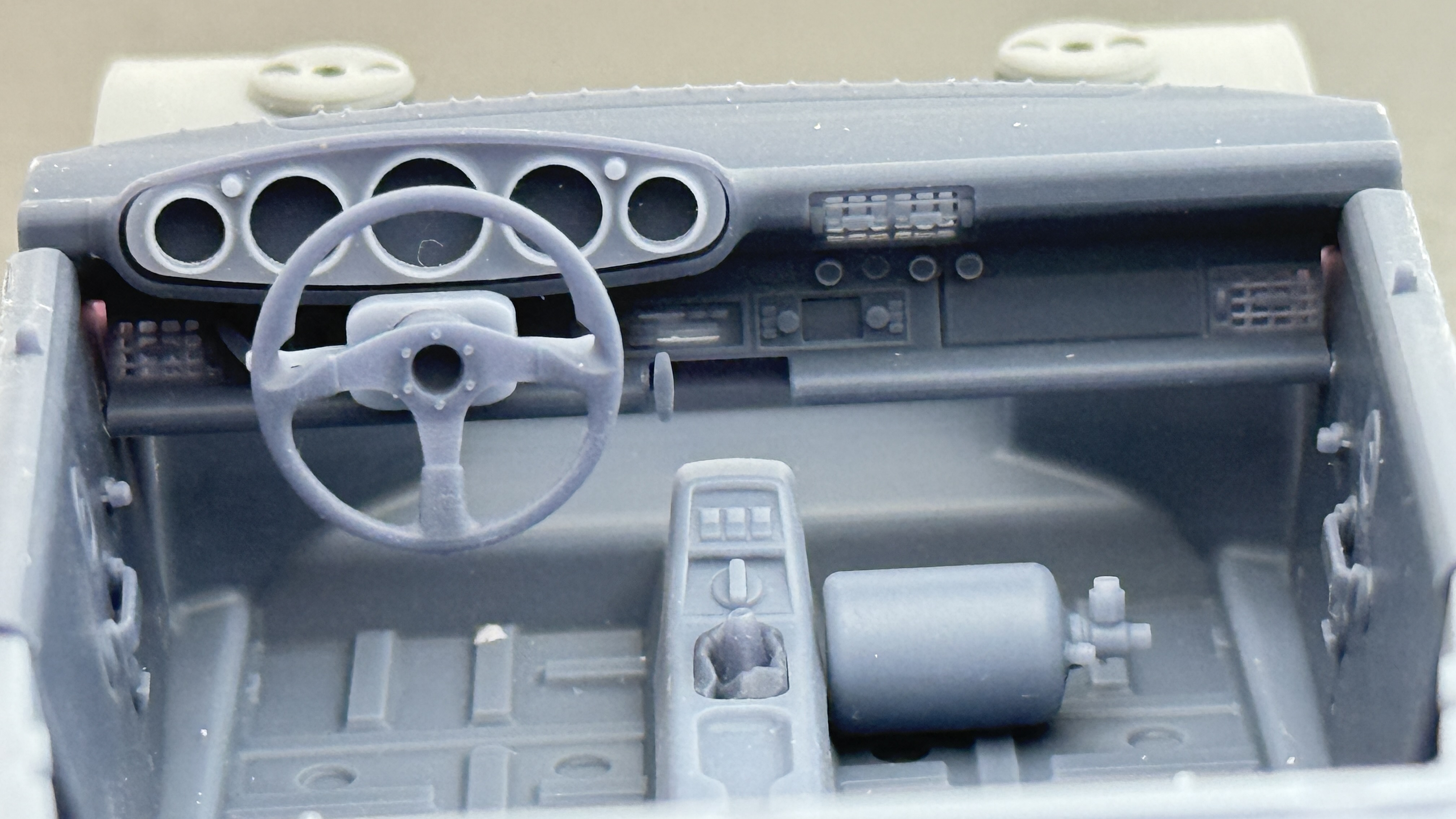 スリットが開口されたエアコン吹き出し口、キットパーツでは実現出来ない穴の開いたステアリングコラムのレバー根元も見どころ。