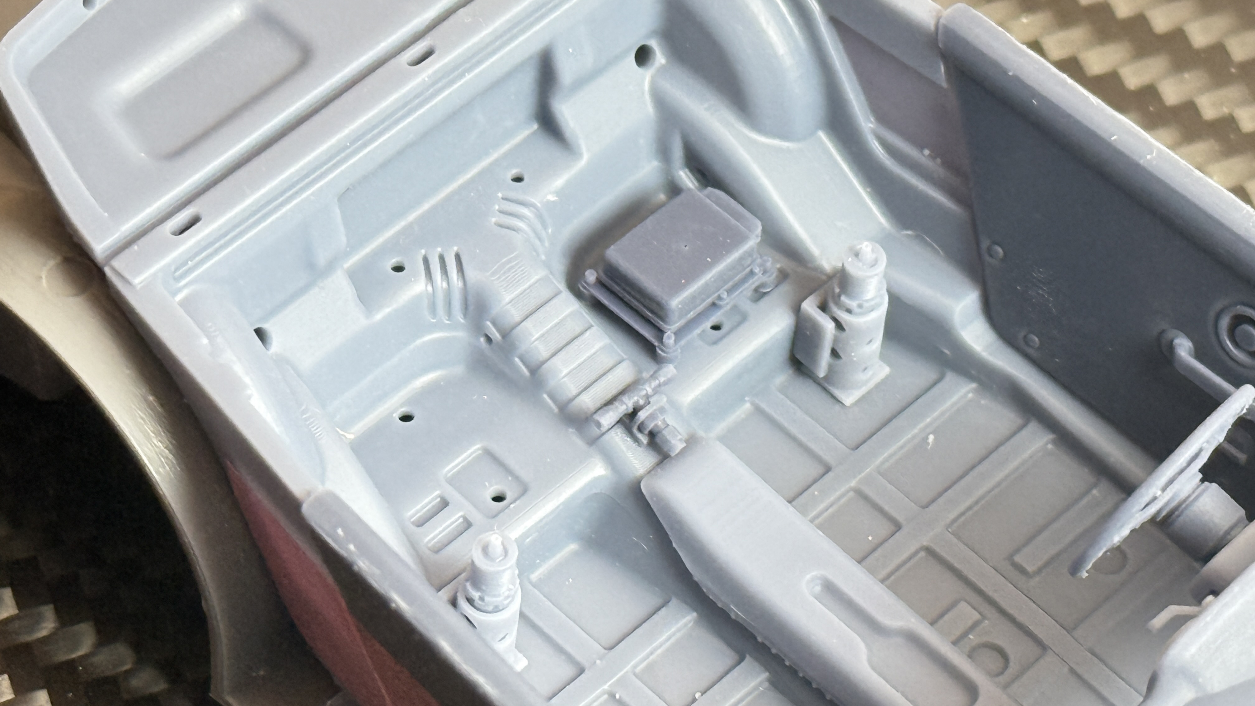 キットは他のバリエーションキットと共用の流用パーツの為、RSモデルだとしても当然の様にリアシートのクッションが存在。