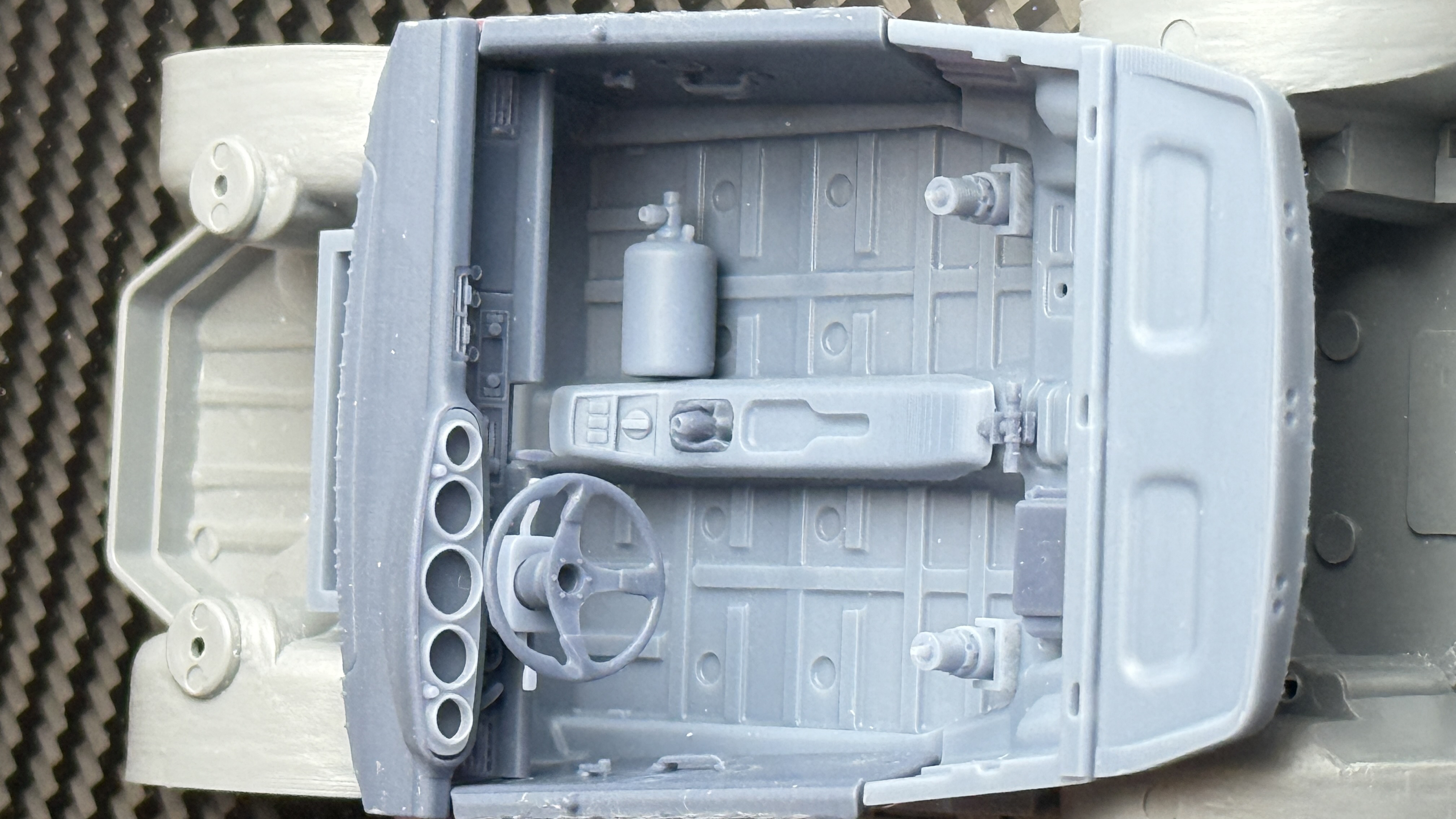 パテを盛り、削ったりしても埒があかないので、バスタブ全体を交換する事でリアシート、カーペットレスのスパルタンな内装を手軽に手に入れます。