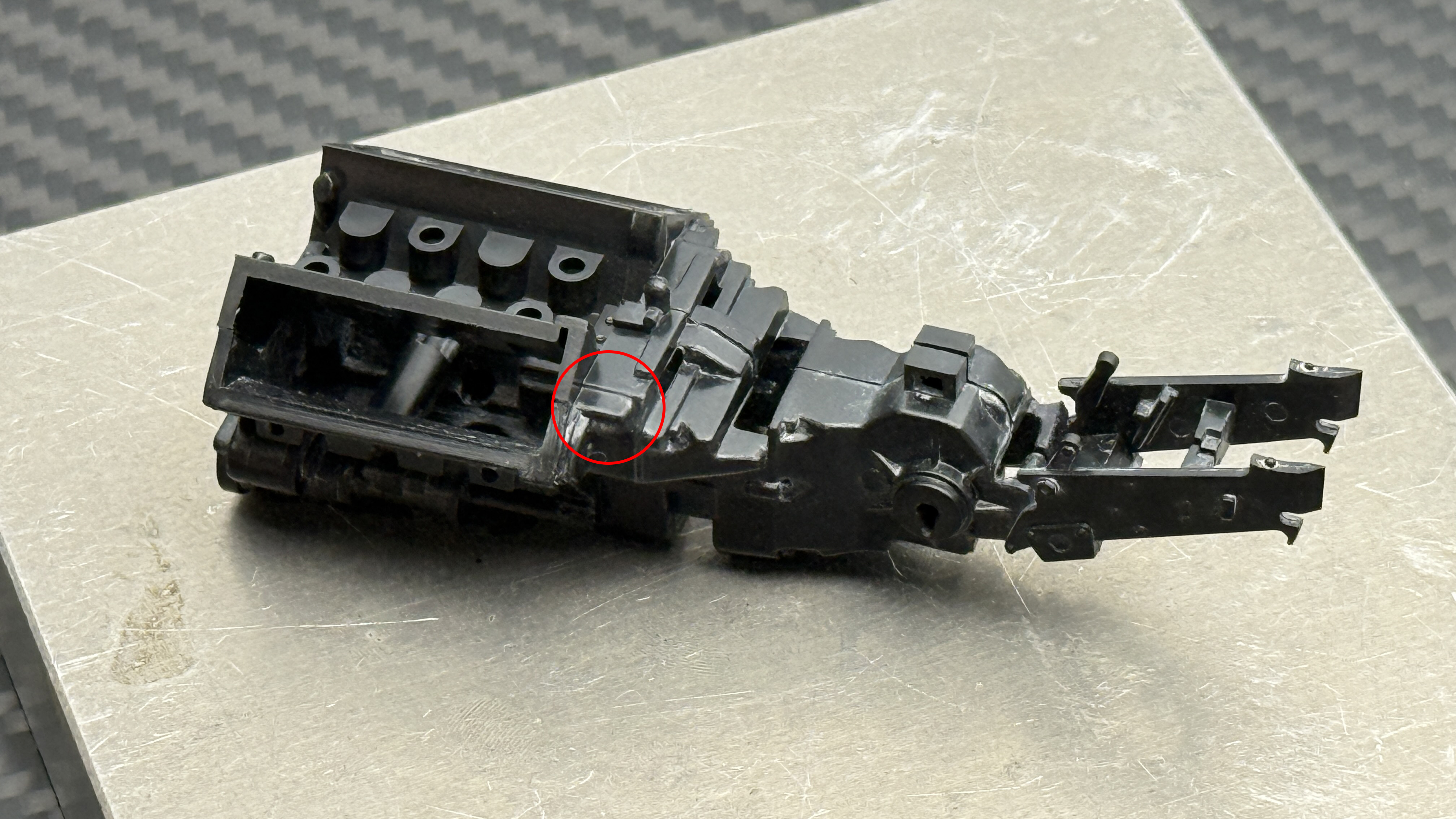 レイトンハウスCG901Bエンジン・排気管セット・パーツ構成参考図 小さくてわかりずらいパーツの単体状態を表した図面です。 サポート材の切り離しの際の参考にしてください。 この部分を削り取って組み込みます